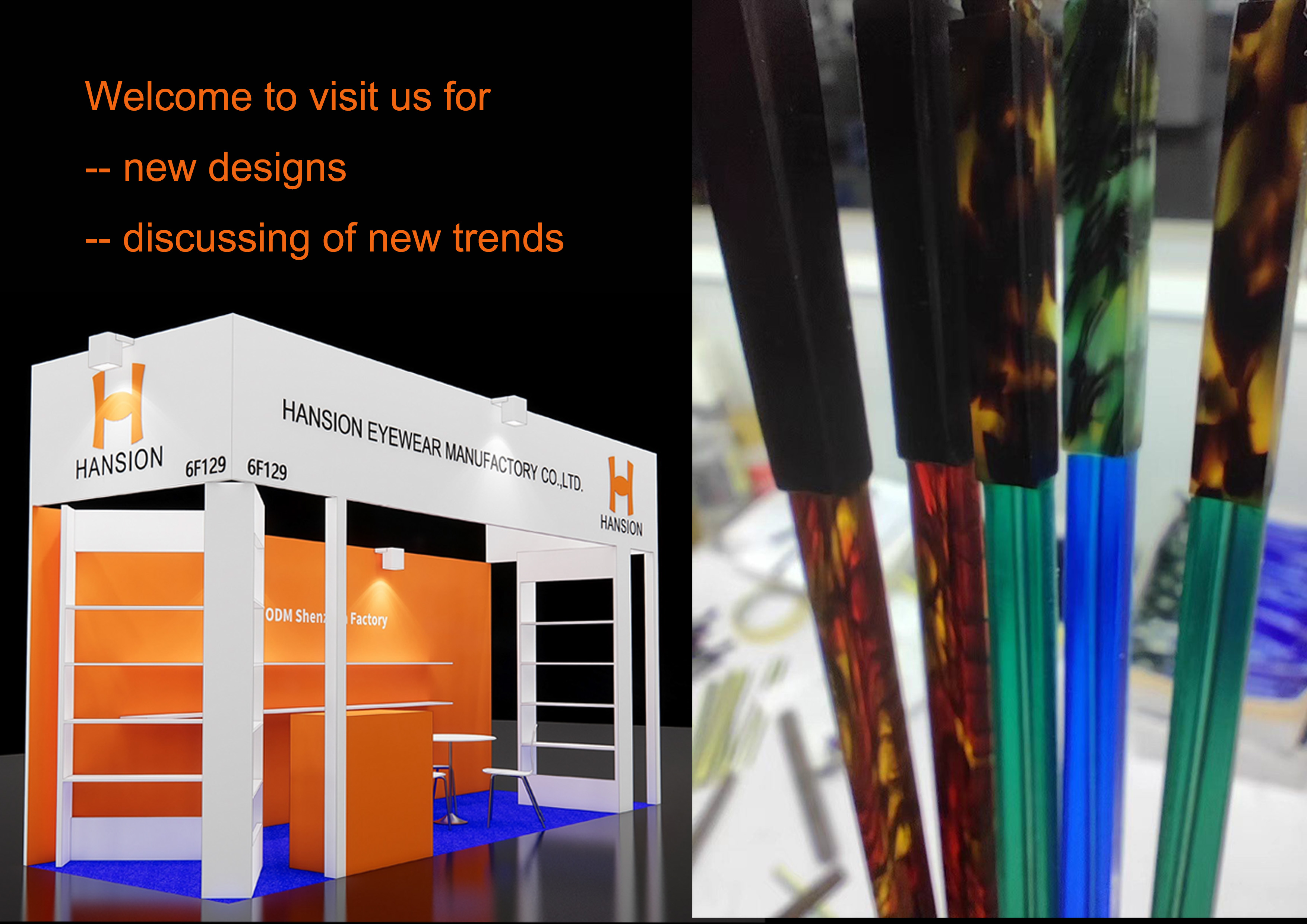 We Hansion Eyewear, as one of the eyewear manufacturers and exporters, we are honored to participate in this exhibition. With more than 15 years of production experience, we also spend a lot of energy and cost on development and design of new eyewear styles every year. Our main eyewear products include lamination acetate eyewear, metal and acetate combination eyewear, titanium eyewear etc. This time, we will bring more than 100 new eyewear frames to meet our new and old customers at the exhibition. You are welcome to visit us at booth# HALL 6 F129 (Silmo 2024 – Hansion Eyewear Manufactory Co., Ltd.)
